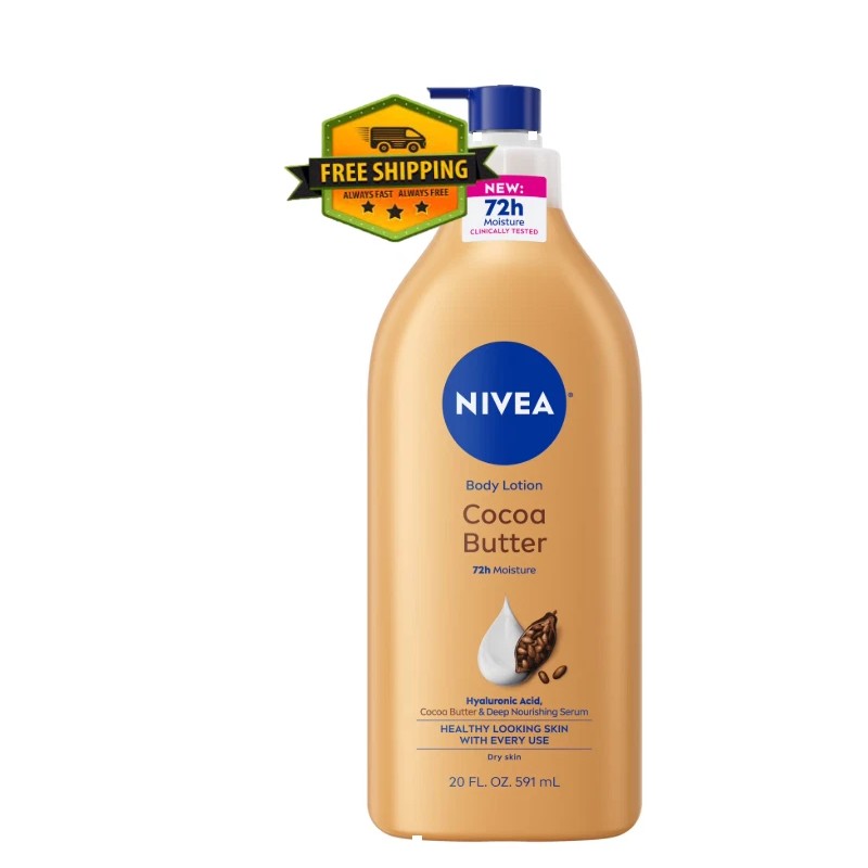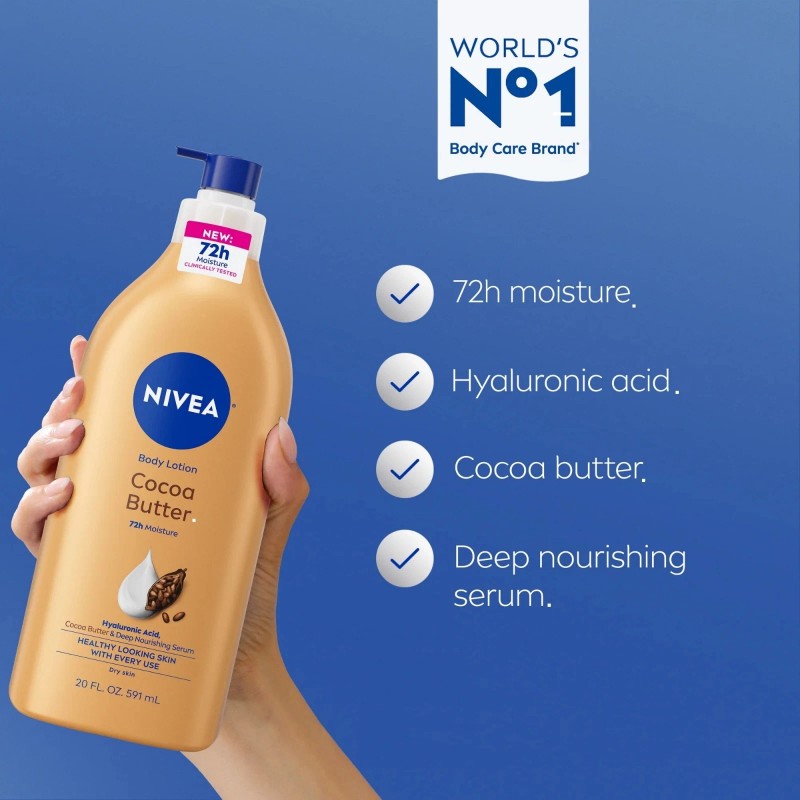 NIVEA Cocoa Butter Body Lotion with Hyaluronic Acid for Dry Skin, 20 fl oz