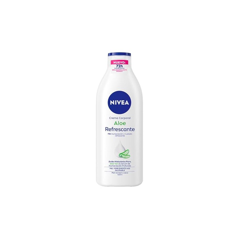 - Experimenta la máxima hidratación con la Crema Corporal NIVEA Aloe Refrescante, que ofrece una sensación de hidratación profunda, refrescante y rápida durante 72 horas que puedes sentir y ver. Su fórmula única, con el doble de ingredientes humectantes, combina humectantes naturales, lípidos que retienen la humedad y aceites nutritivos para mantener el agua en la piel, evitando su evaporación hacia otras zonas. De esta manera, tu piel queda protegida contra la sequedad al reducir la pérdida de agua y aumentar su nivel de hidratación. Nuestros rigurosos métodos de prueba han demostrado que esta crema corporal humectante de NIVEA, en combinación con el Serum de Hidratación Profunda, penetra en las capas más profundas de la piel para retener la humedad y ofrecer una humectación prolongada de hasta 72 horas