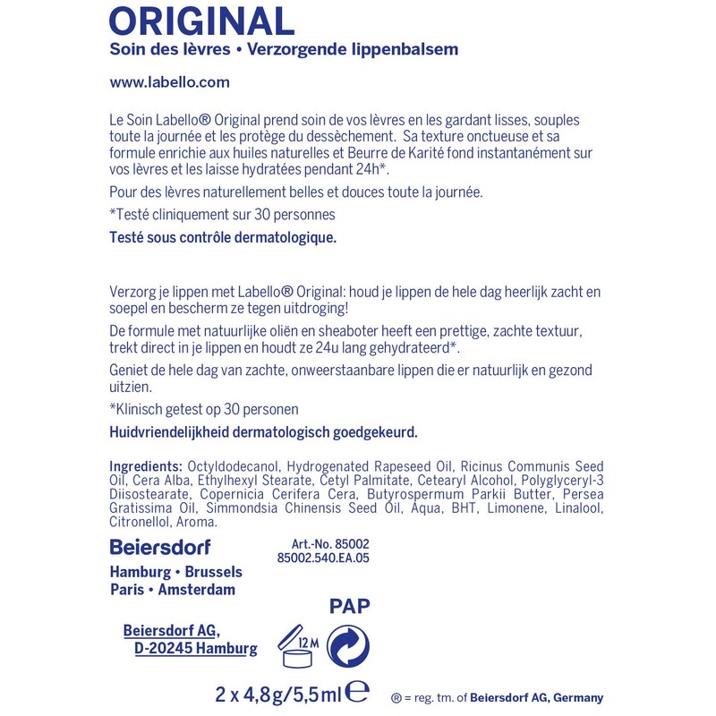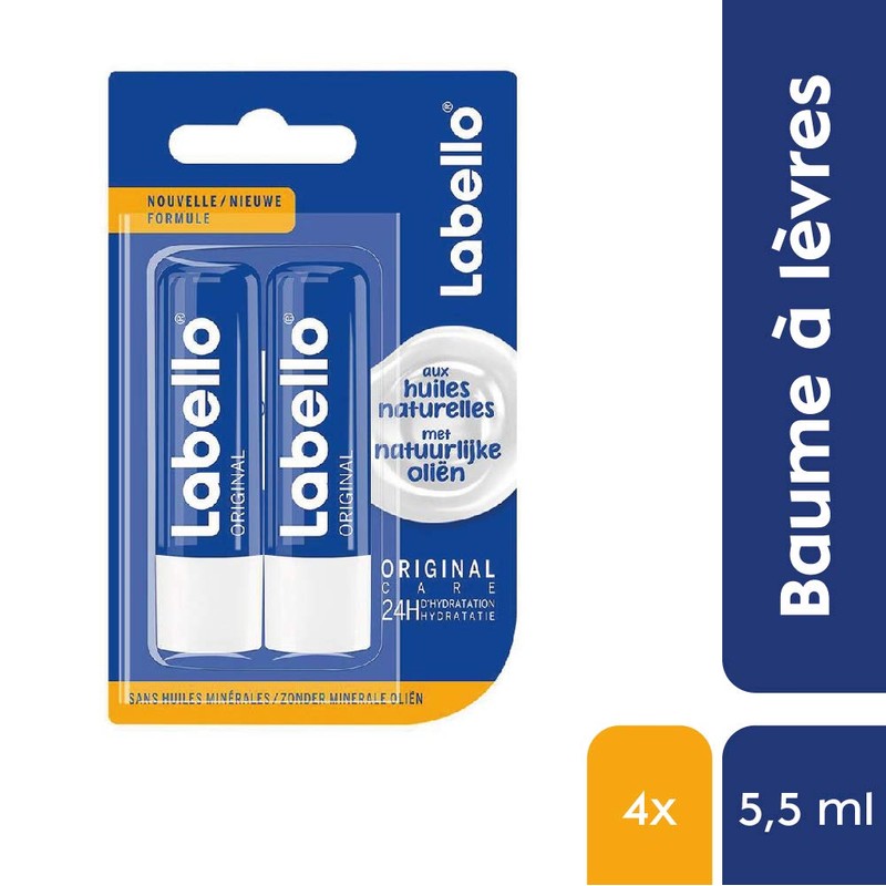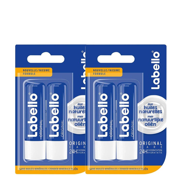 NIVEA Labello Original Lip Balm (4 x 5 ml) Enriched with Natural Oils and Creamy Texture, Lip Care, 24 Hours Persistent Humidity