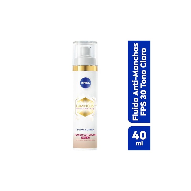 NIVEA - NIVEA Luminous 630 Fluido con Color 3 en 1 Tono Claro (40 ml) - Enriquecido con Ácido Hialurónico y Vitamina E para una Piel Luminosa sin Manchas por Edad, Solares u Hormonales. ✨ Producto de calidad premium con excelentes reseñas. Materiales de primera calidad y diseño funcional. 🔥 Alta demanda - Stock limitado. Ideal para quienes buscan lo mejor en calidad y estilo. Producto auténtico con satisfacción total asegurada. ¡No te quedes sin el tuyo y aprovecha esta oportunidad única!