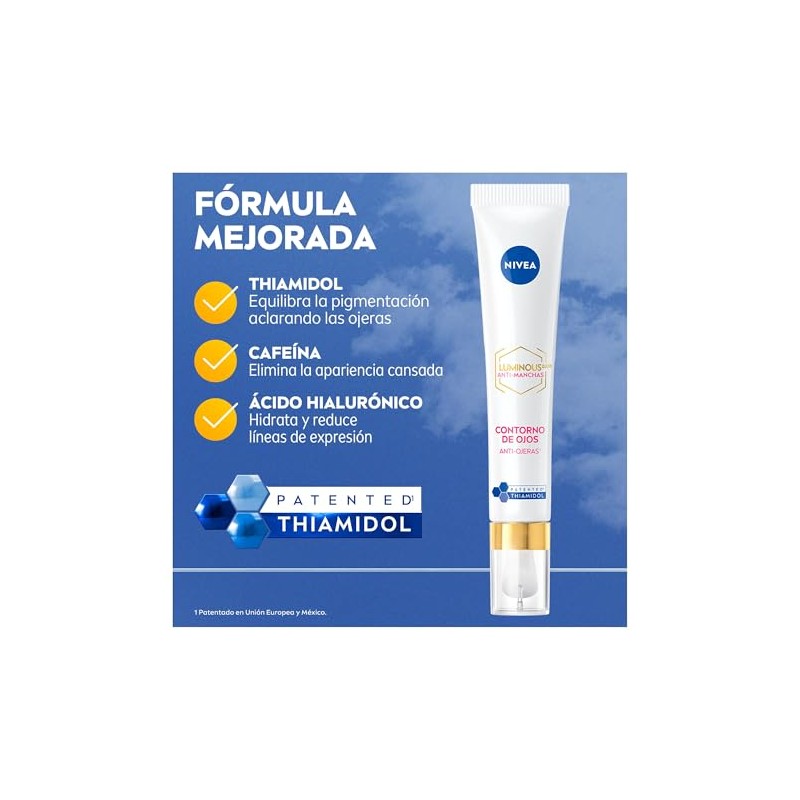 NIVEA - NIVEA Luminous630 Anti-Manchas Contorno de Ojos Anti-Ojeras (15 ml) - Enriquecido con Ácido Hialurónico y Cafeína para una Piel Luminosa sin Ojeras.