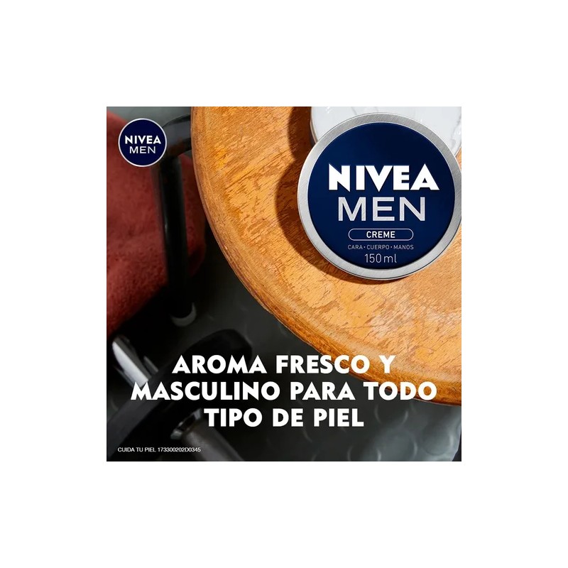 La Crema Nivea Men Multipropósito cuenta con un aroma único y masculino, y viene en un práctico envase de lata. Es libre de parabenos, vegana y cruelty-free, además de estar dermatológicamente testeada, asegurando un cuidado de calidad y consciente. ¡Haz que tu piel luzca y se sienta bien con NIVEA MEN Creme! ✨