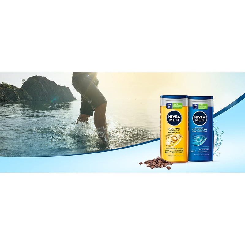 - Fresh Ocean - The NIVEA MEN Fresh Ocean shower gel offers the pure freshness of the ocean in the shower: with sea minerals and ocean-fresh fragrance.