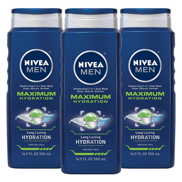 NIVEA Men Maximum Hydration 3 in 1 Body Wash 16.9 Fluid Ounce (Pack of 3)