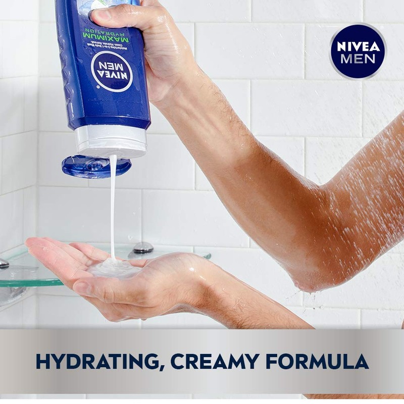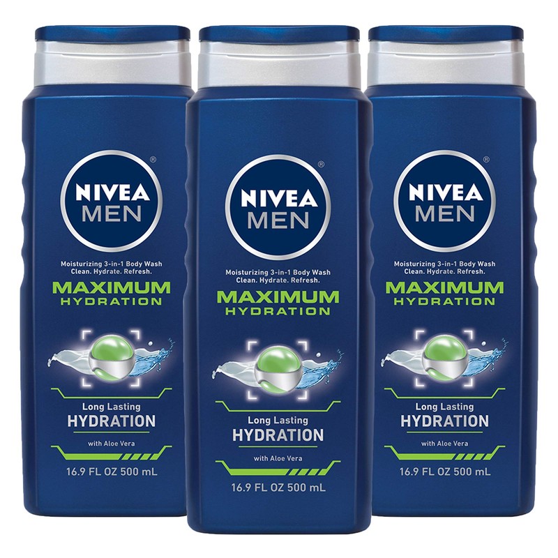 Nivea men maximum hydration body wash with moisturizers & aloe vera extract effectively cleanses and provides skin with intense moisture even after towel drying.