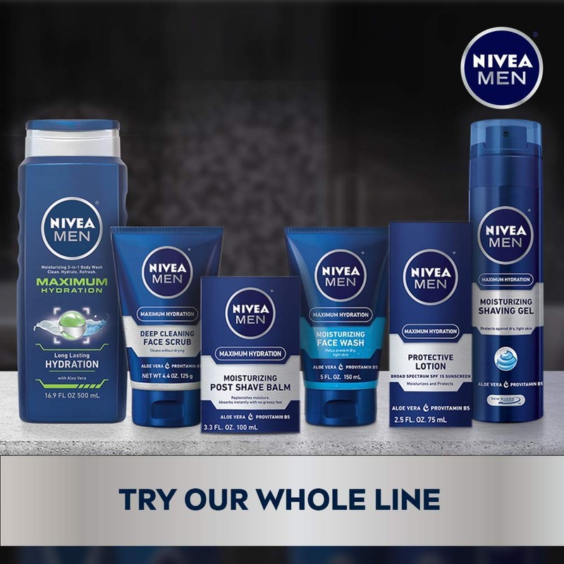 Nivea men maximum hydration body wash with moisturizers & aloe vera extract effectively cleanses and provides skin with intense moisture even after towel drying.