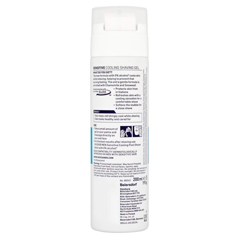 Nivea Men Sensitive Cooling Shaving Gel 0% Alcohol Skin Care 200 ml