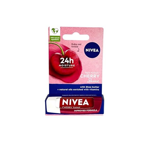 Nivea Cherry Shine Caring Lip Balm - Long Lasting Moisturisation - 4.8g