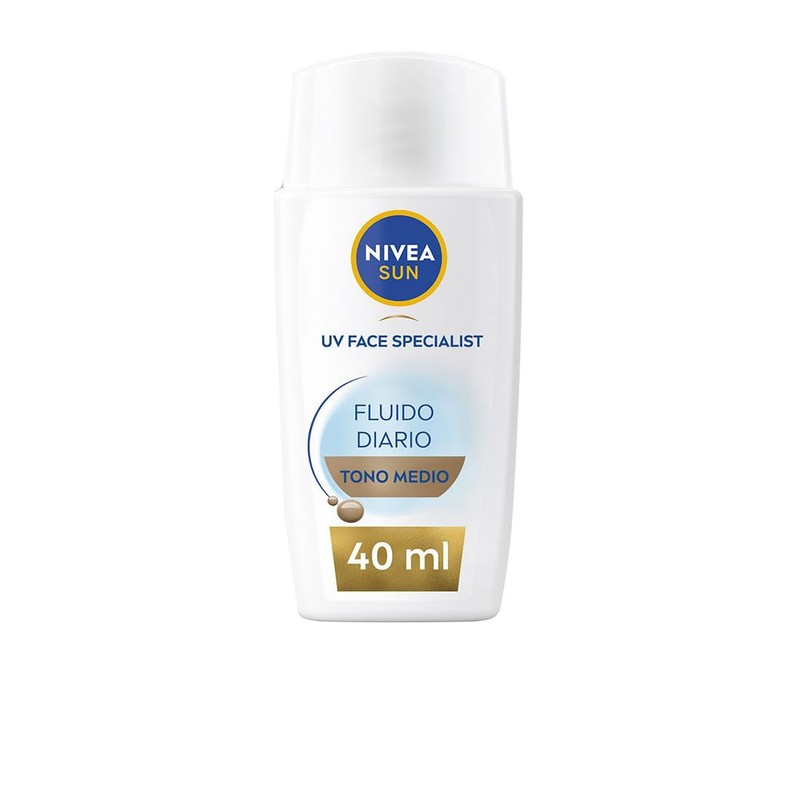 NIVEA SUN Daily Fluid with Colour SPF 50+ 40 ml, Face Sun Cream with Hyaluronic Acid, Licocalcon A & Niacinamide, Ultra Light Face Sun Cream with Matte Effect, Medium