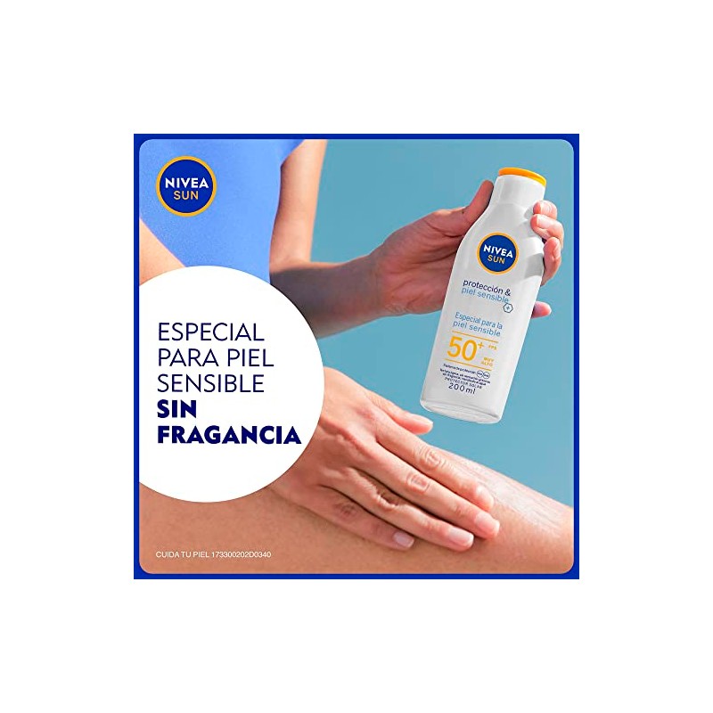 NIVEA SUN - NIVEA SUN Protector Solar Corporal para piel Sensible Protect & Sensitive (200 ml) Bloqueador Solar Resistente al agua con FPS 50+, Loción Solar No Grasosa ni Pegajosa