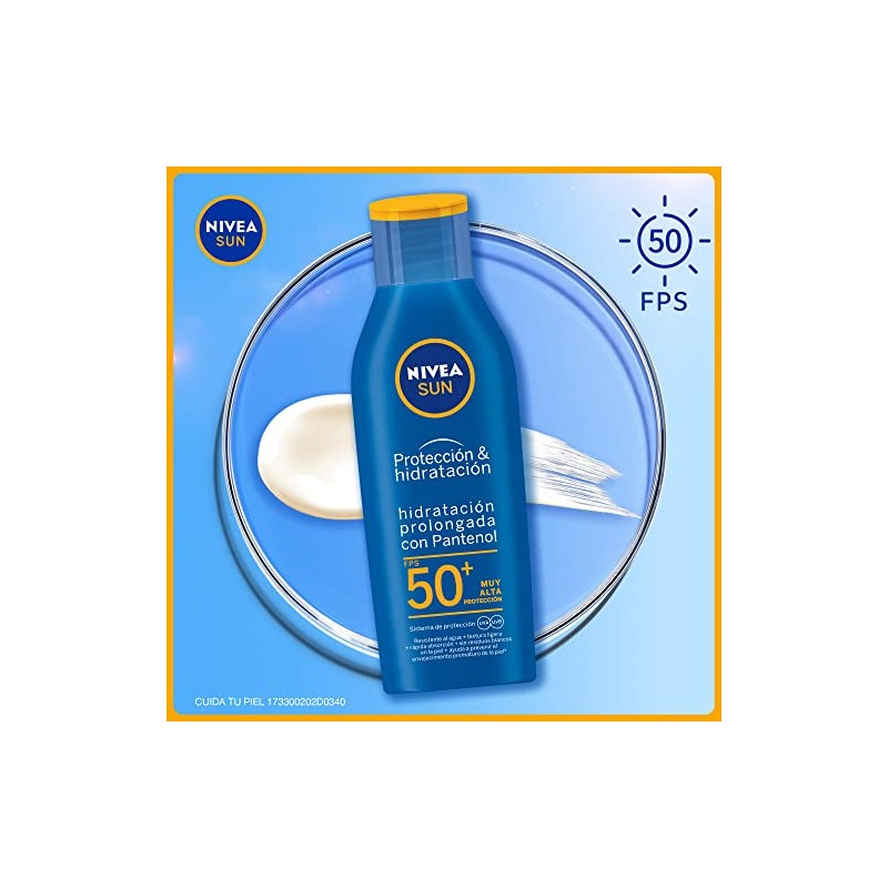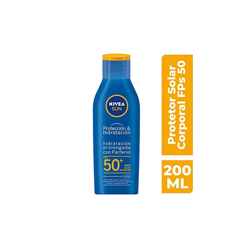 NIVEA SUN - NIVEA SUN Protector Solar Corporal Protect & Moisture (200 ml), Bloqueador Solar Hidratante Resistente al Agua con FPS 50+ y Pantenol, Loción Solar No Grasosa para Todo Tipo de Piel