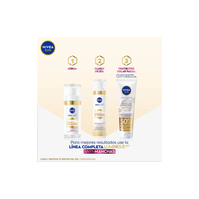 Título: NIVEA SUN Protector Solar Facial Anti-Manchas Luminous630 FPS50 40 ml con Ácido Hialurónico, Vitamina E, textura ligera, refrescante y de rápida absorción sin sensación grasosa o pegajosa