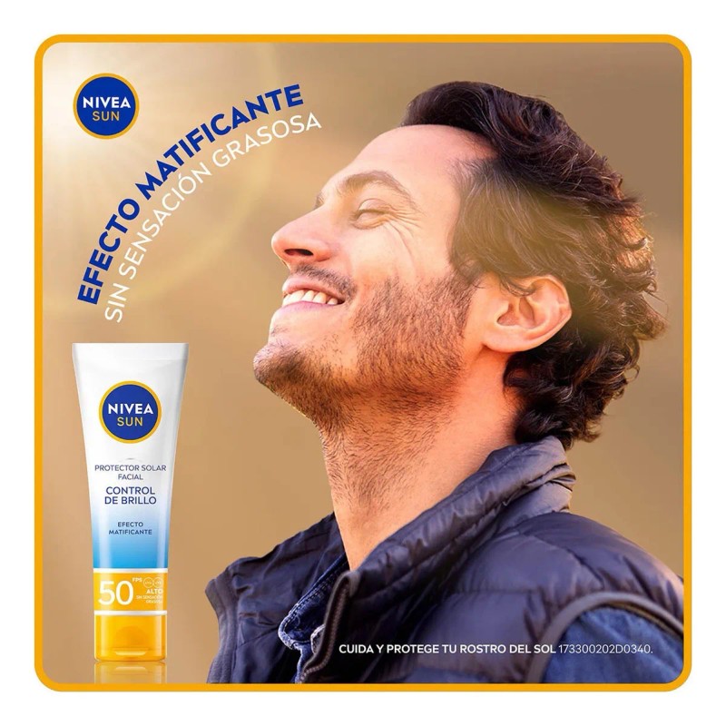Disfruta del sol sin preocupaciones con el protector solar facial NIVEA SUN UV Face Control de Brillo FPS 50, tu aliado diario para una piel protegida y radiante.