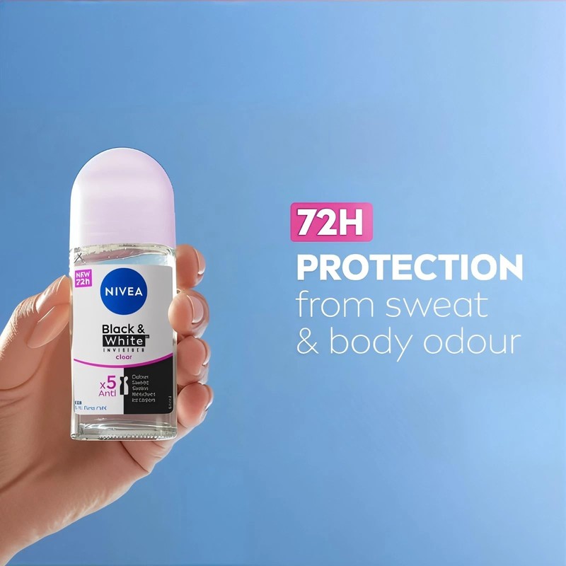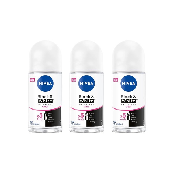 NIVEA Women Black & White Invisible Clear Roll-On Antiperspirant Deodorant 50ml – 72 Hour Sweat and Odor Protection, No White Marks, Alcohol-Free, Fresh Scent, Underarm Care, Pack Of 3