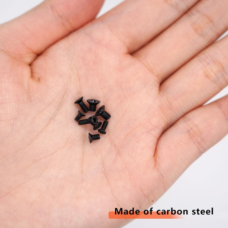 - Material: made of high-quality carbon steel, with a black coating for an elegant look. The flat, thin head ensures a precise fit and easy handling. Ideal for use in PC screw sets, as PC parts or for use with PC screws in repair and assembly situations.
