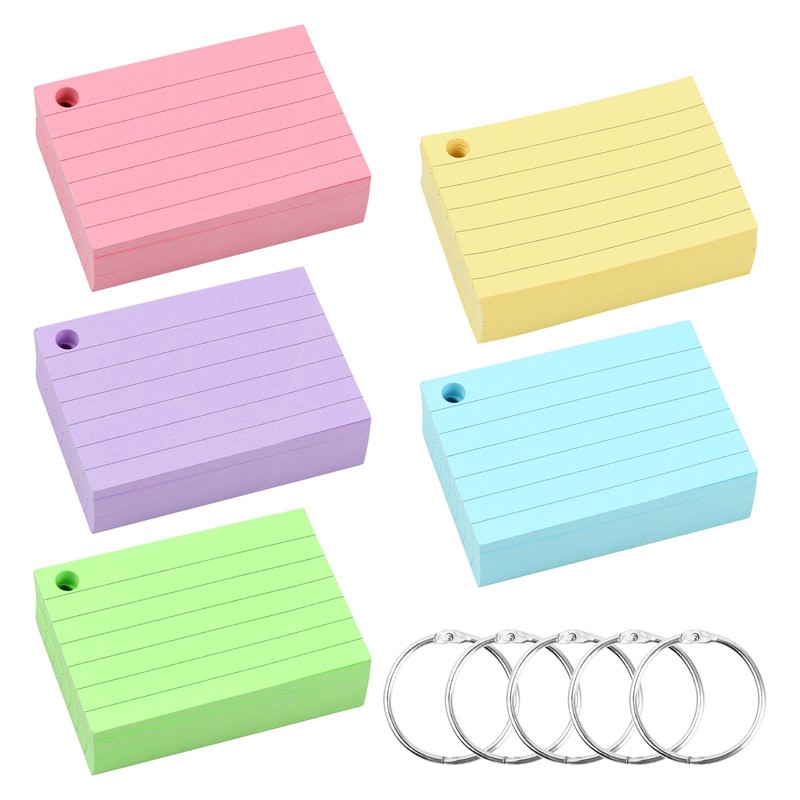 Nivofu Flash Card, A8 Ruled Index Cards Paper, Colours Record Cards, 500 Pcs Revision Cards with Metal Binder Ring, Notecards Lined Index Cards, Flshcards Notecards for Study Office School