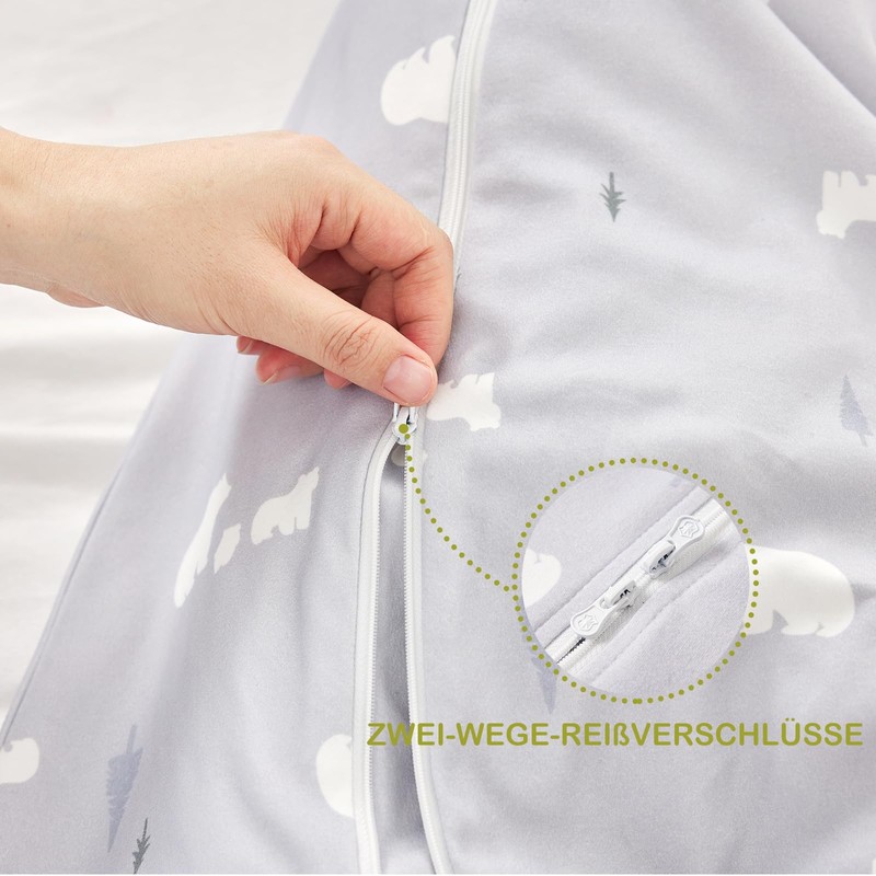 • Crawling snap for easy nappy changing: this sleeping bag for all seasons offers thoughtful details that parents will love. The poppers in the crotch area allow quick, uncomplicated nappy changes, while the 2-way zip makes it easy to put on and take off the baby or can be adjusted as needed. The zip guard ensures that your little one remains protected from scratches