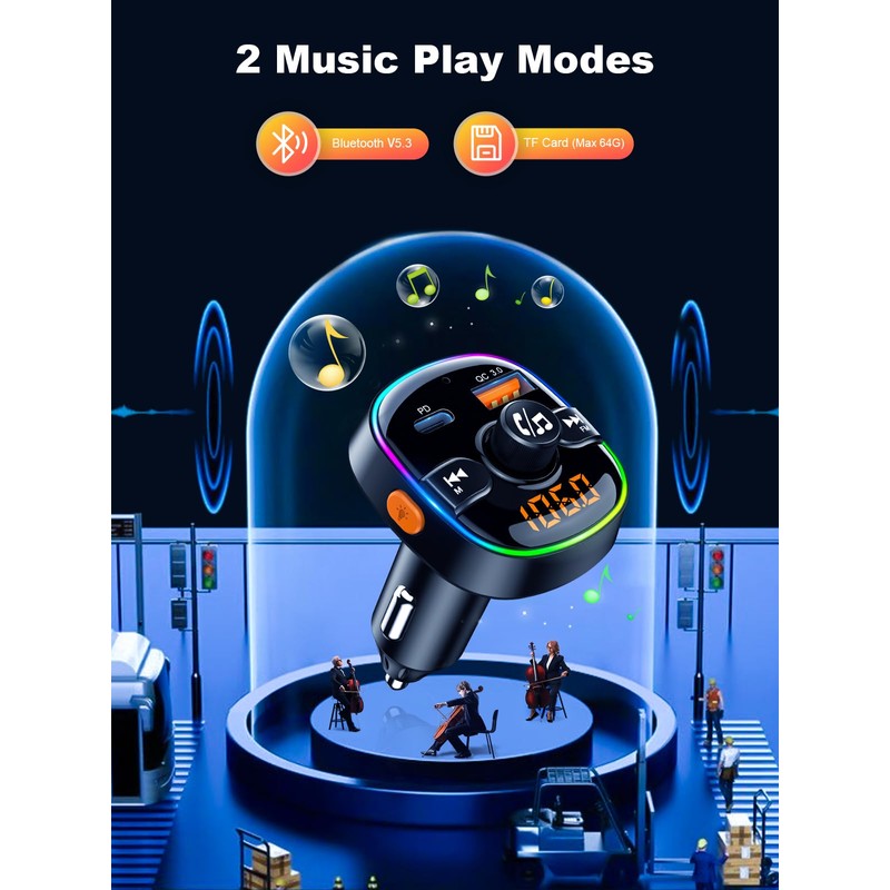 With Bluetooth 5.3, this Bluetooth radio transmitter car ensures stable connections and uninterrupted music. Enjoy automatic reconnection and personalized music playback via Bluetooth and TF card, for a seamless and enjoyable experience.