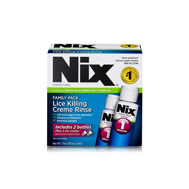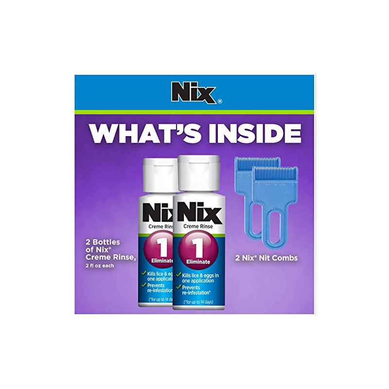 - Contains 2 bottles of Nix Creme Rinse, 2 fl oz each and 2 Nix Nit Combs