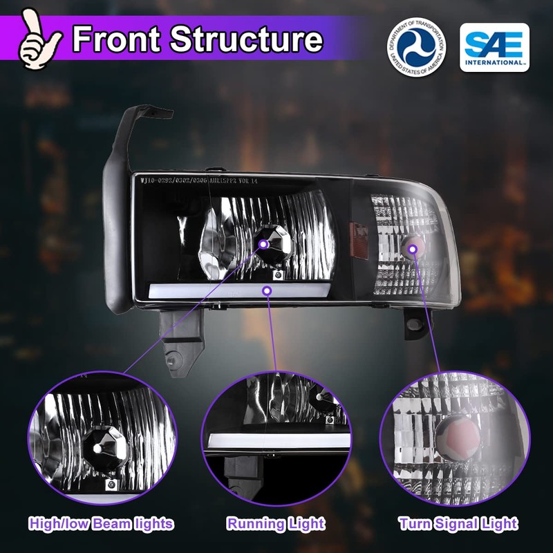 - ✅ [Fully Direct OEM Fitment] Headlights assembly for Dodge Ram 1500 1994-2001, for Dodge Ram 2500 3500 1994-2002 (Not fit the models with Sport Package). Meet OEM requirements, Direct replacement style headlights.