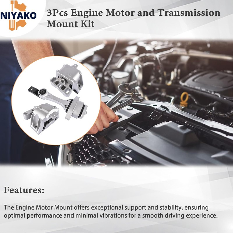Niyako 3Pcs Engine Motor and Transmission Mount Kit Replacement# A6929 A6935 A6930 1J0199262BF 1J0199851AA 1J0199555AJ Fit 1999-2005 Jetta Beetle 1.8L 2.0L, 1999-2006 Golf 1.8L 2.0L