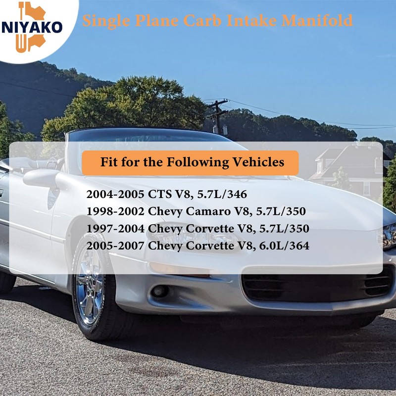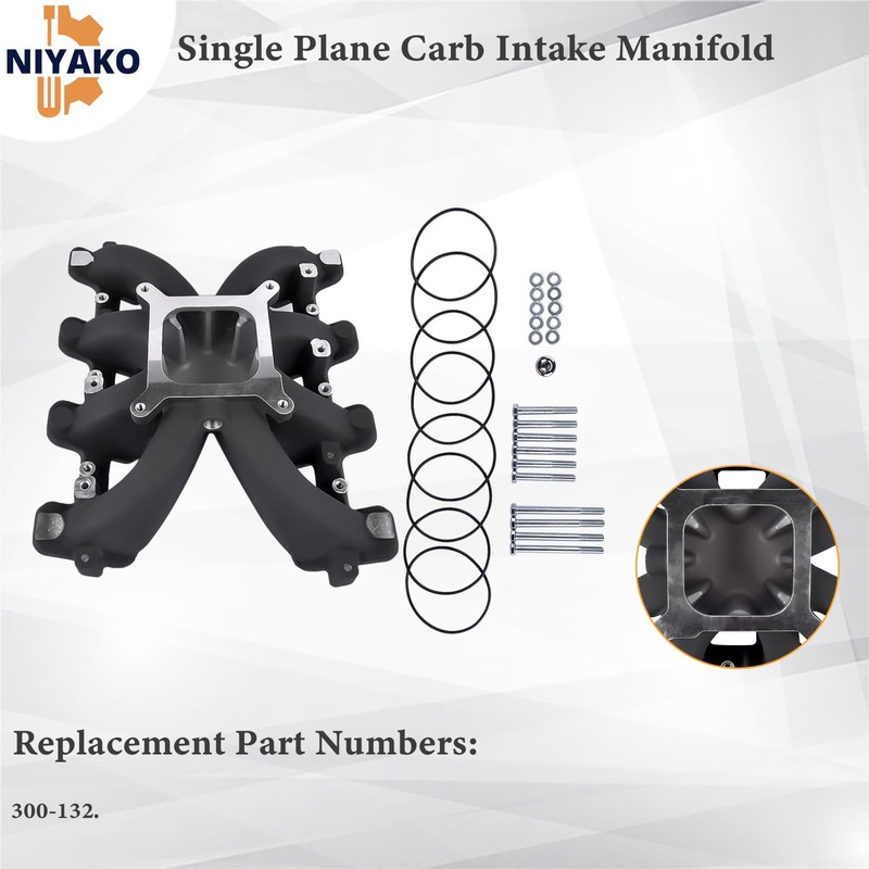 Niyako Single Plane Carb Intake Manifold Replacement# 300-132 Fit Chevy Camaro Corvette GM LS1 LS2 LS6 5.7L 6.0L V8