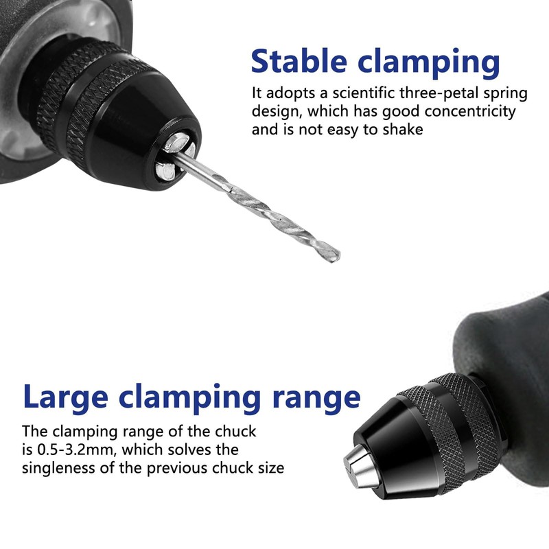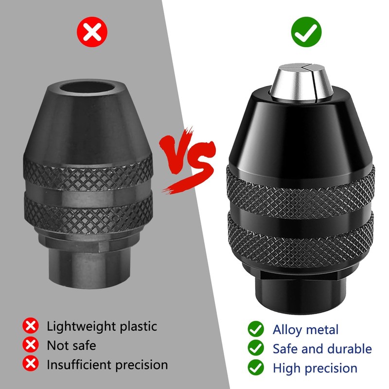 - 【Sturdy Construction】Unlike traditional plastic chucks, this keyless chuck is made from high-quality alloy material, making it more robust and durable. The one-piece structure enhances stability and safety, and the built-in spring provides consistent performance under high-speed rotation, ensuring longevity and reliability.