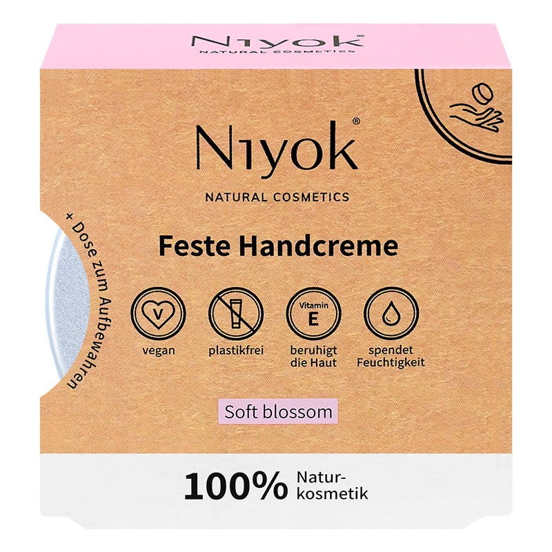 The solid hand cream stick by Niyok nourishes the hands with vitamin E and mild lipids for a soft skin feel with a pleasant floral scent. It is packaged in a tin that is convenient for travelling.
