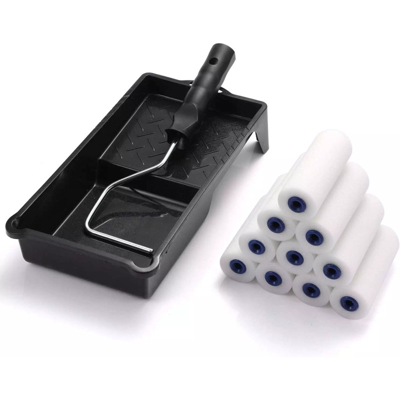 Mini Foam Paint Roller Cover Refills with Roller Frame, Paint Tray, Pack of 12