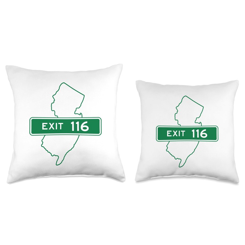 NJ New Jersey Garden State Parkway Apparel New Jersey NJ GSP Garden State Parkway Exit Sign 116 Throw Pillow, 18x18, Multicolor