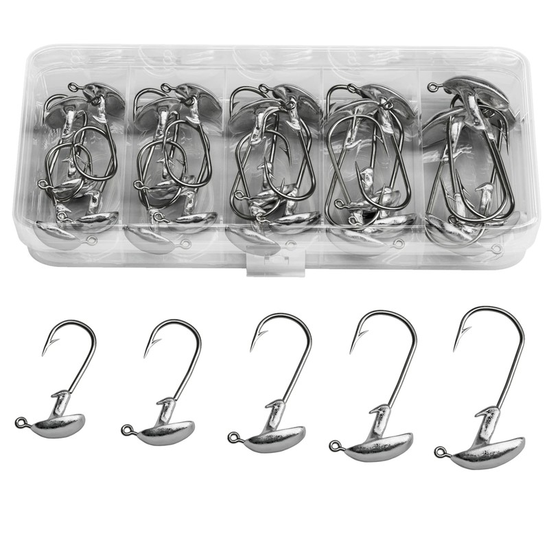 - Lead head rubber fish: each jighead is perfect as a lead head for rubber fish, twister and all other artificial bait made of rubber. Each jig head from the jig head set is equipped with a barb to ensure a secure hold in the rubber bait.