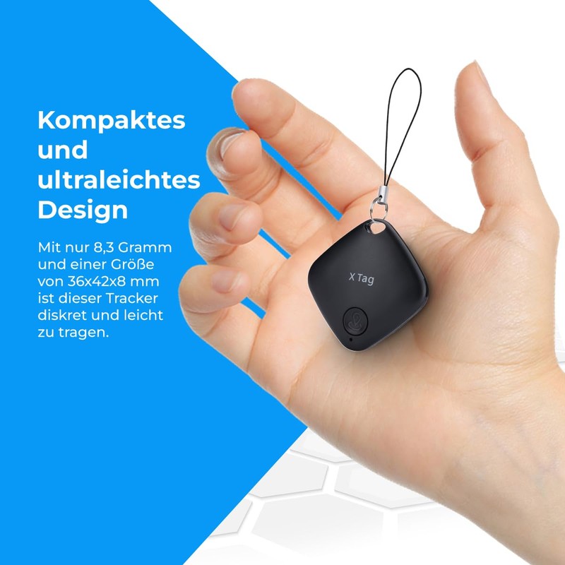 - COMPACT & ULTRA LIGHTWEIGHT DESIGN At only 8.3 grams and a size of 36 x 42 x 8 mm, this tracker is discreet and easy to take anywhere. Durable ABS material ensures durability without adding extra weight.