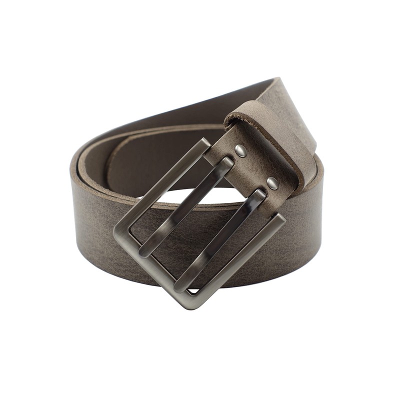 NK Belt GmbH Handmade Men's Leather Belt Made of Buffalo Leather with Double Pin Buckle, Made in Germany, Suit Jeans Belt 43 mm #DD-15, gray