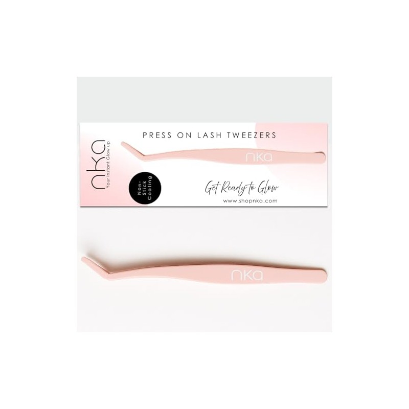 NKA Precision Lash Tweezers – Non-Stick Coated Tips for Effortless Press-On Lash Application – Soft Pink, Ergonomic Design