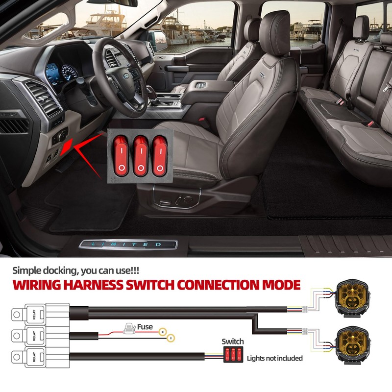 • NKCELL POWER LED Light Bar Wiring Harness Kit, 12AWG 12V Heavy Duty 4Pin 1V2 Rocker On/Off Switch Power Waterproof Relay Blade Fuse for LED Off-Road Lights Work Light