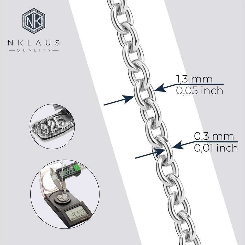 NKlaus 1.3 mm Silver Anchor Chain (Length Selectable 40 cm - 50 cm) 925 Sterling Silver Round, Sterling Silver, No Gemstone