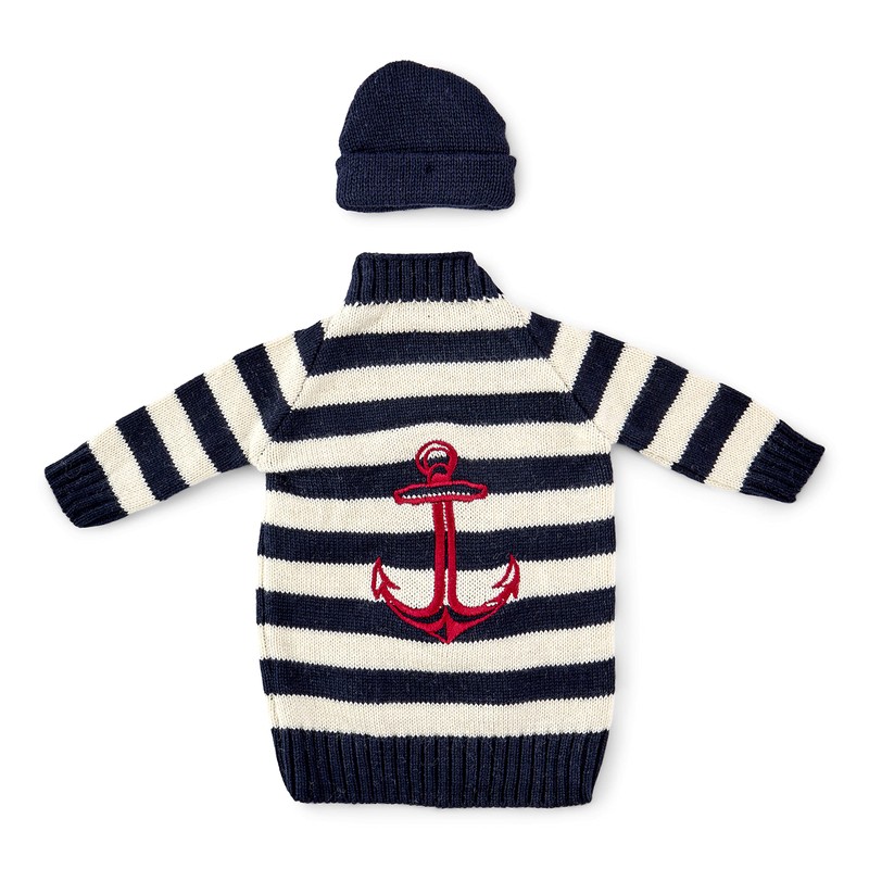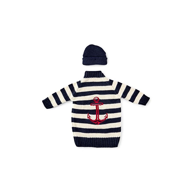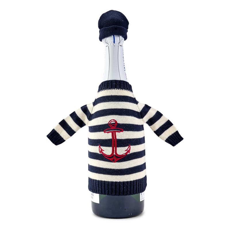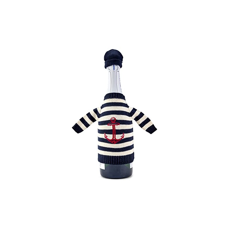 NKlaus 18 cm Bottle Jumper with Hat 100% Cotton Beige Blue Stripes Bottle Cooler Gift Maritime 11530