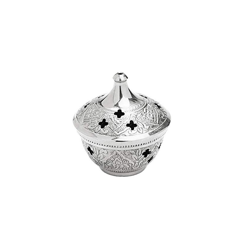 NKlaus 2838 Incense Bowl 8 cm Handmade with Grid for Frankincense Incense Mixture Incense Burner House Cleaning Silver