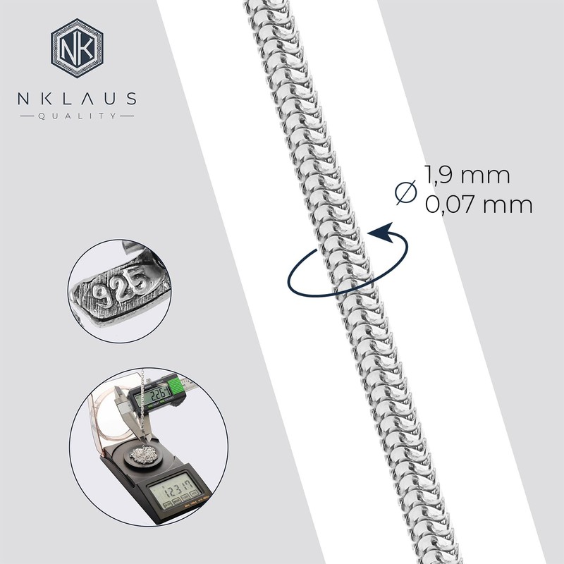 NKlaus Genuine 925 Sterling Silver Snake Chain 1.90 mm Wide, Sterling Silver, No Gemstone