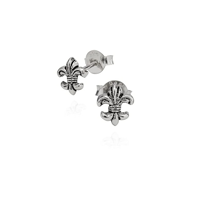 NKlaus Pair of 925 Sterling Silver Medieval Stud Earrings Fleur de LYS 7157, Sterling Silver