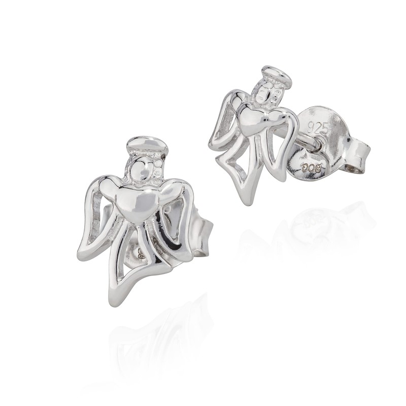 NKlaus Pair of Small Stud Earrings Guardian Angel 925 Silver 8.9 mm Glossy Matte Angel Tarnish, Silver