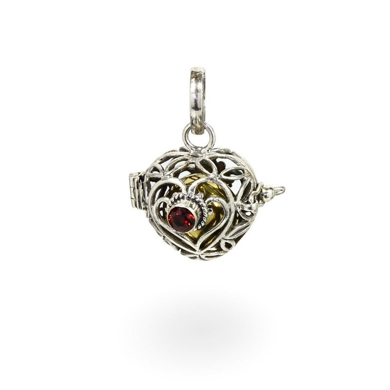 NKlaus Real 925 Sterling Silver Angel Caller Heart with Real Garnet and Harmony Ball 7384, Silver, Garnet