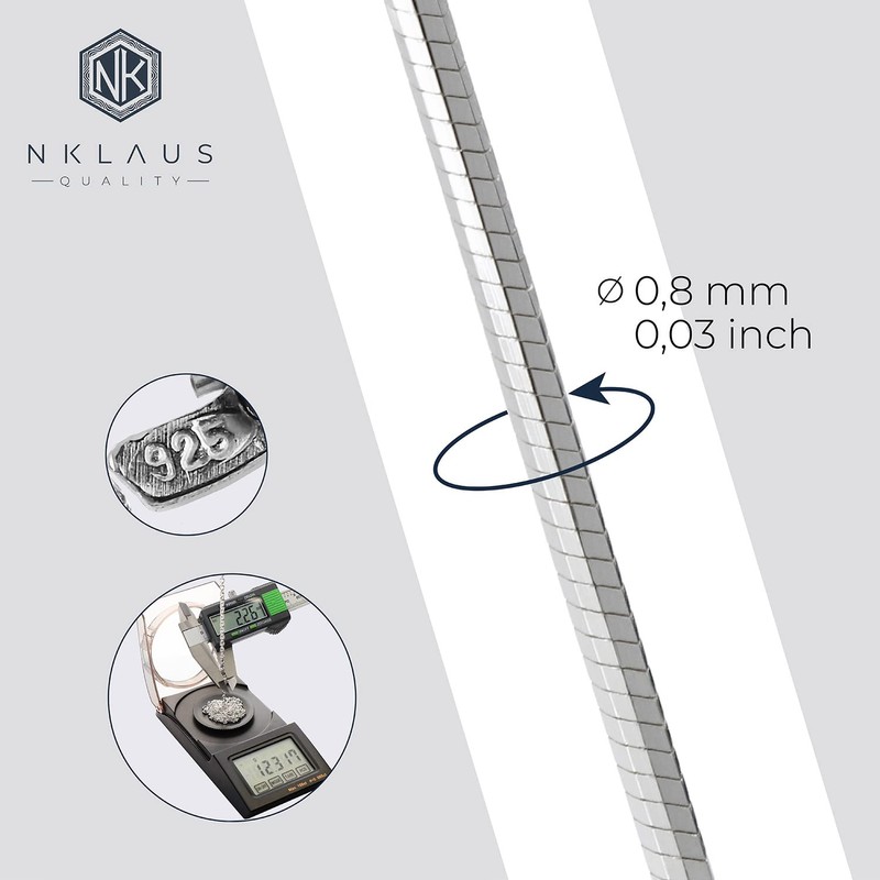 NKlaus Snake Chain Necklace 8 Layers Diamond-Coated 925 Silver 0.8 mm Wide Necklace Thin, Sterling Silver