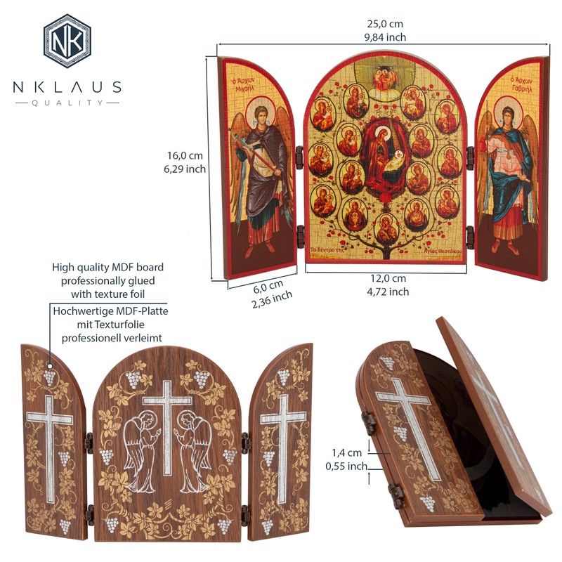 NKlaus Tree of Holy Mother of God Icon Triptych Wood 25 x 16 cm Christian 13813