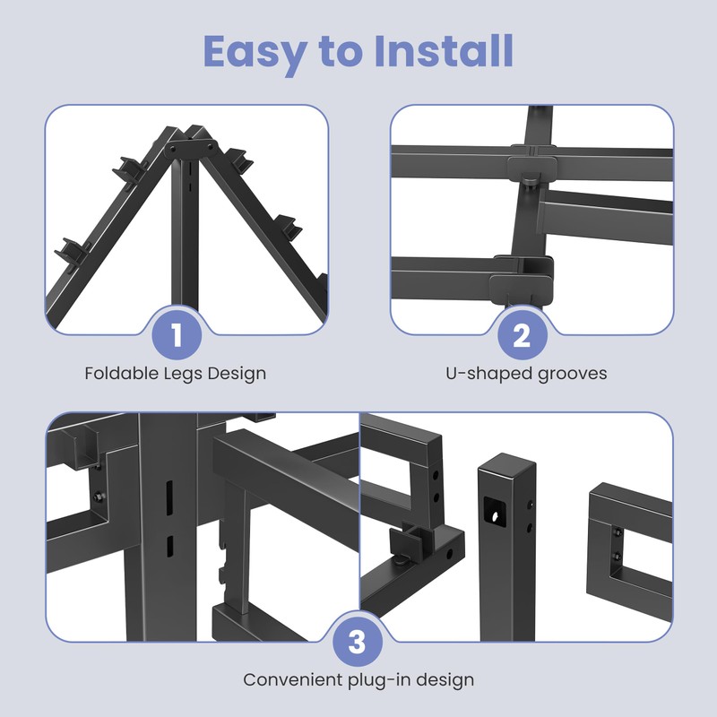- Easy Installation - This bed frame is made of reinforced material while featuring folding legs, U-channel and drop-in design. The installation process is straightforward and efficient, all assembly tools and installation instructions are included in the package.(no additional tools required)