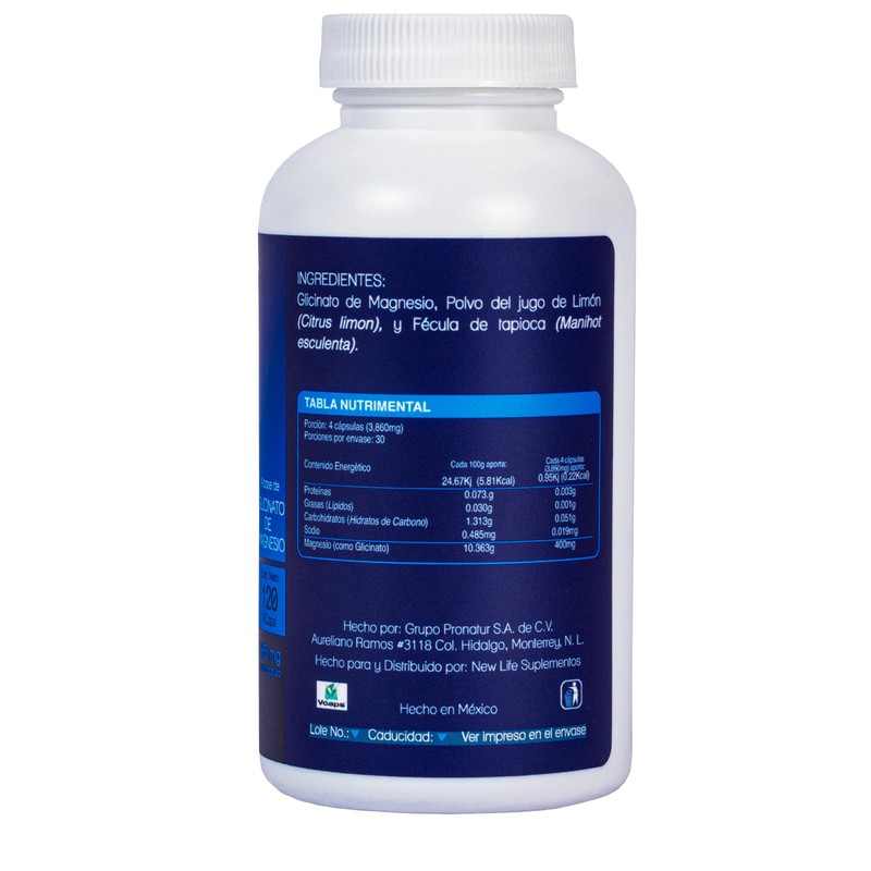 - ✅ Aporta 400mg de Glicinato de Magnesio por dosis. Contiene 120 cápsulas vegetales