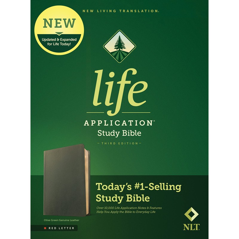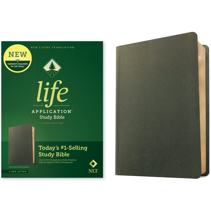 NLT Life Application Study Bible, Third Edition (Genuine Leather, Olive Green, Red Letter)