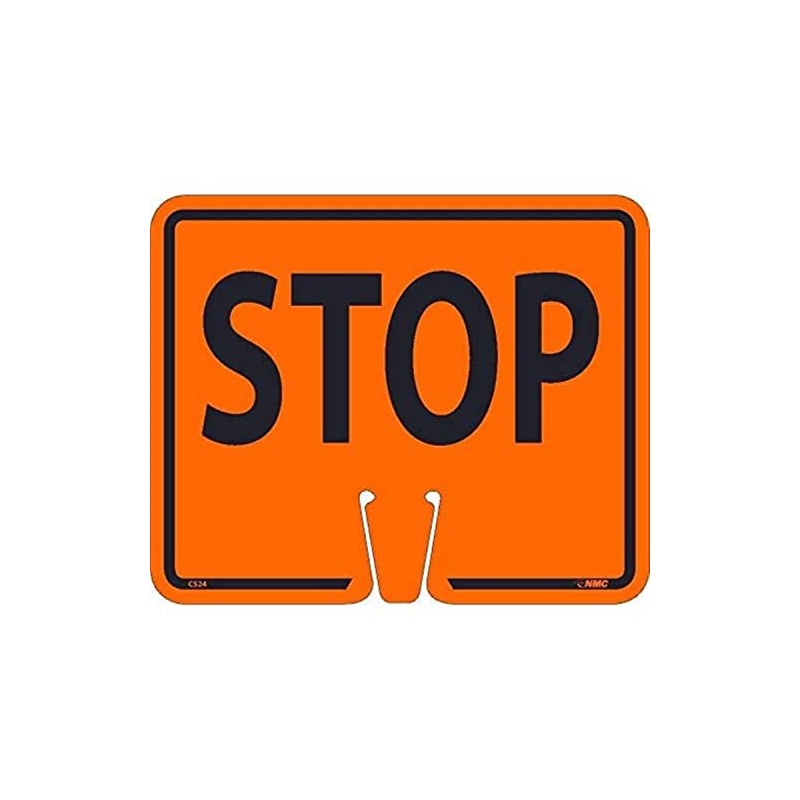 NMC CS24 STOP Safety Cone Sign - 12.63 in. x 10.38 in., Rigid Plastic Pedestrian Safety Sign, Black Text on Orange