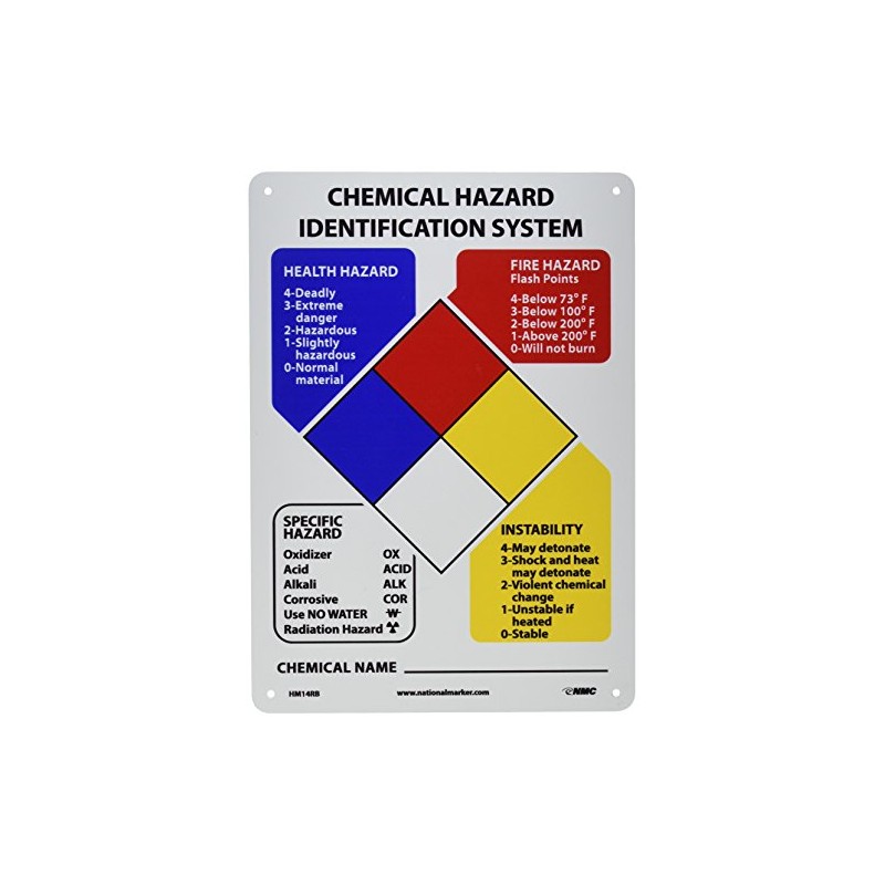 NMC HM14RB Hazardous Materials Classification Sign, 10" Length x 14" Height, Rigid Plastic, Black/Blue/Red/Yellow on White