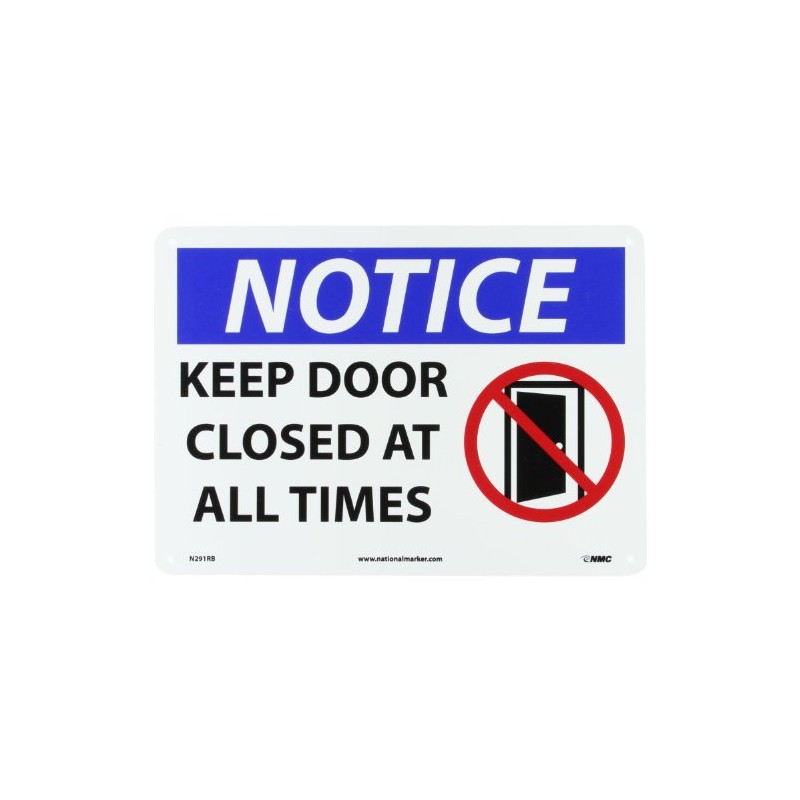 NMC - N291RB N291PB NOTICE - KEEP DOOR CLOSED AT ALL TIMES -14 in. x 10 in. Plastic Notice Sign with Graphic, White/Black Text on Blue/White Base